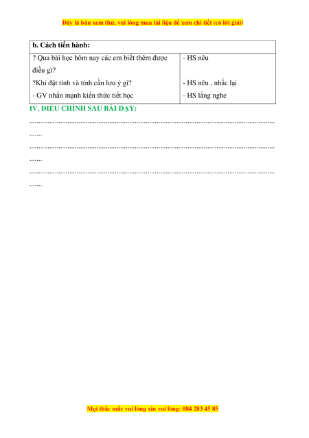 - Rèn kĩ năng tính toán, kĩ năng trình bày, khả năng tư duy và lập luận. b. Cách tiến hành