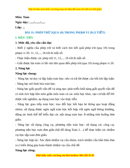 ọ thắc mắc vui lòng xin liên hotline: 084 283 45 85 Đây là bản xem th , vui ử lòng mua tài li u ệ đ xe ể m chi ti t ế (có l i ờ gi i ả ) - Qua tìm hi u ki ể n t ế h c m ứ i ớ , th c ự hành, luy n t ệ p s ậ phát ẽ tri n năng l ể c t ự duy ư và l p ậ lu n, năng l ậ c ự giao ti p t ế oán h c. ọ - Qua gi i ả bài toán th c t ự i n s ễ phát ẽ tri n năng l ể c gi ự i ả quy t ế v n đ ấ . ề 3. Phẩm ch t ấ - Rèn luy n t ệ ính c n t ầ h n, chí ậ nh xác. - Chăm chỉ tích c c ự xây d ng ự bài, chú ý l ng ắ nghe, đ c, ọ làm bài t p, ậ v n ậ d ng ụ ki n t ế h c ứ vào th c t ự i n d ễ ư i ớ s h ự ư ng d ớ n c ẫ a ủ giáo viên. - Yêu thích môn h c, ọ sáng t o, ạ có ni m ề h ng