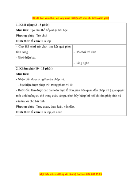 Giáo án Phép trừ trong phạm vi 10 Toán lớp 1 Kết nối tri thức