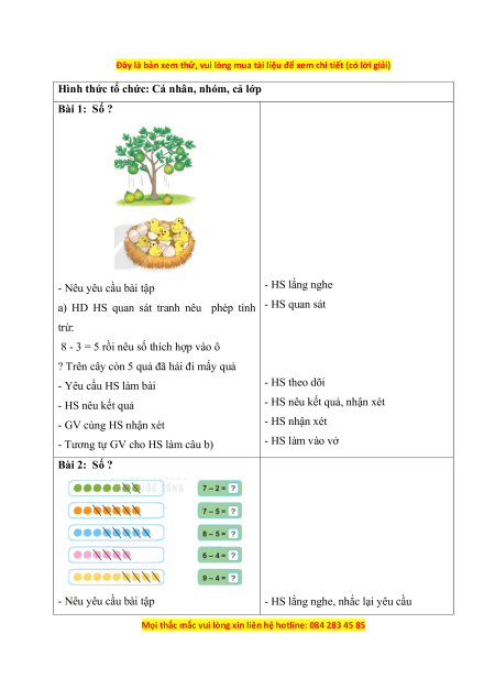 Hình thức tổ chức: Cá nhân, nhóm, cả lớp