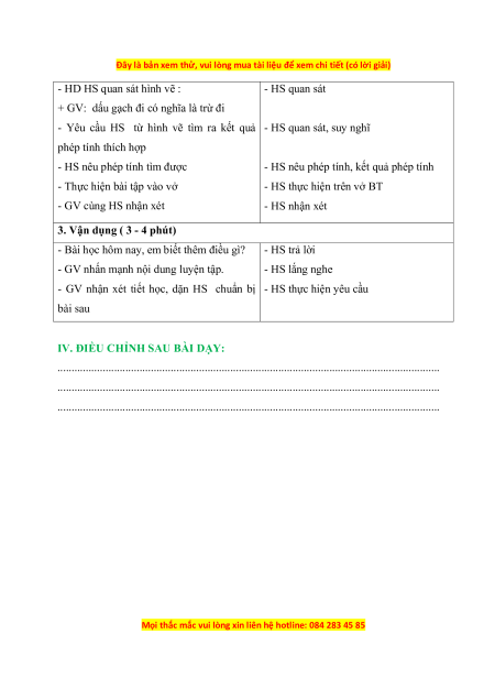 - Viết được phép trừ phù hợp với tranh ảnh, hình vẽ hoặc tình huống thực tế có vấn