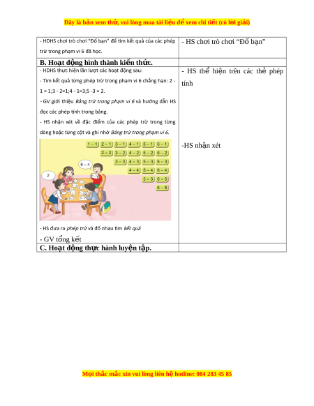 - GV giới thiệu Bảng trừ trong phạm vi 6 và hướng dẫn HS