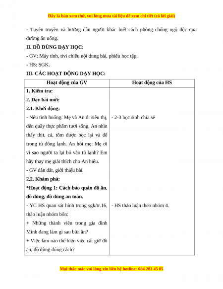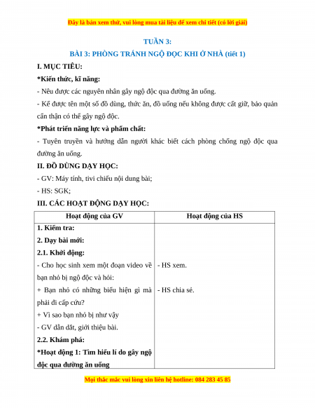 BÀI 3: PHÒNG TRÁNH NGỘ ĐỌC KHI Ở NHÀ (tiết 1) I. MỤC TIÊU: