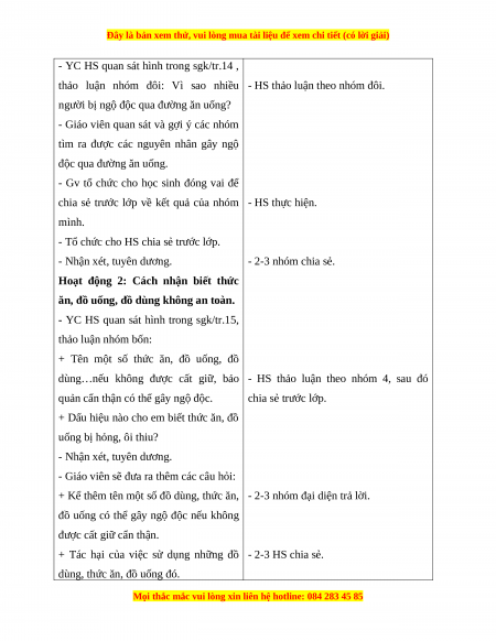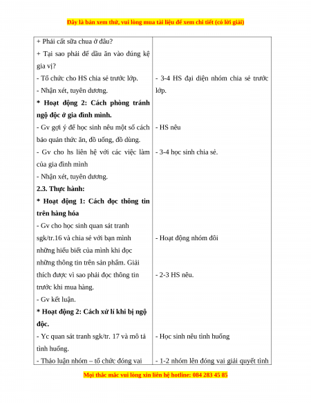 - Biết cách xử lí những tình huống đơn giản khi bản thân hoặc người nhà bị ngộ độc.
