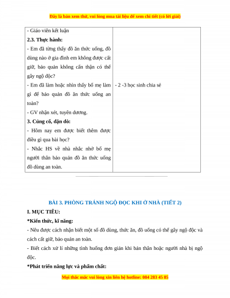 BÀI 3. PHÒNG TRÁNH NGỘ ĐỌC KHI Ở NHÀ (TIẾT 2) I. MỤC TIÊU: