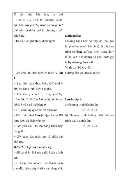 Giáo án Phương trình bậc hai một ẩn Toán 9 Cánh diều