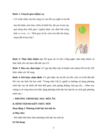 - HS nhận biết khái niệm phương trình bậc hai một ẩn. b) Nội dung: 3