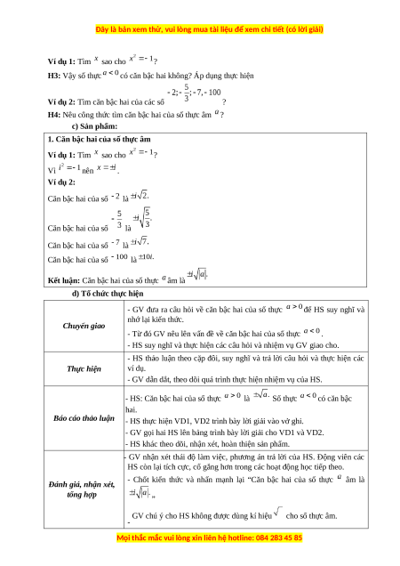 H4: Nêu công thức tìm căn bậc hai của số thực âm ? c) Sản phẩm: