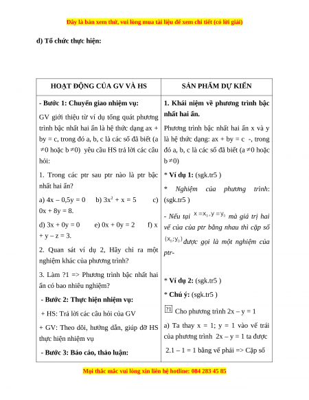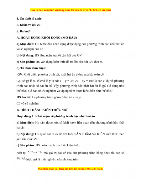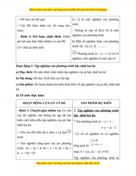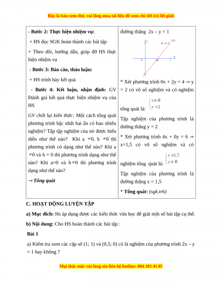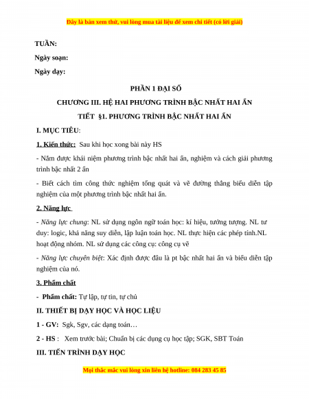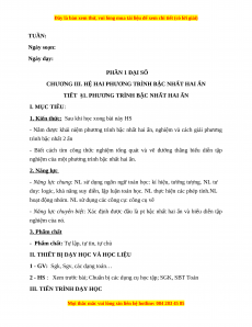 - Năng lực chuyên biệt: Xác định được đâu là pt bậc nhất hai ẩn và biểu diễn tập nghiệm của nó. 3. Phẩm chất