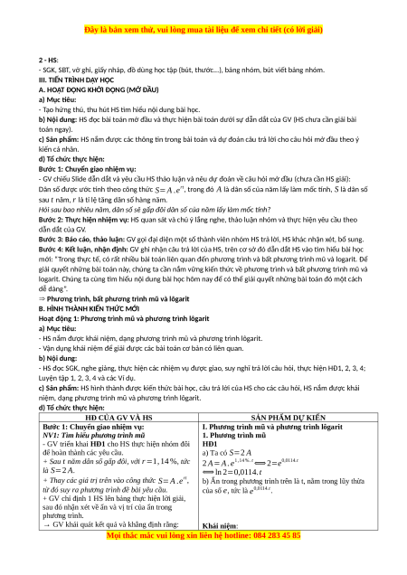 và bất phương trình mũ và lôgarit để giải quyết các bài toán thực tế như: Sự tăng trưởng dân số, chỉ số pH,….. -
