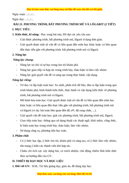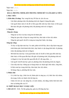 BÀI 21. PHƯƠNG TRÌNH, BẤT PHƯƠNG TRÌNH MŨ VÀ LÔGARIT (2 TIẾT) I. MỤC TIÊU: