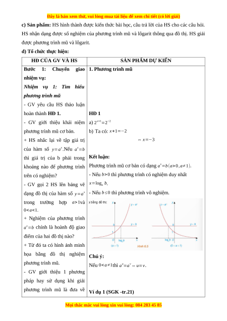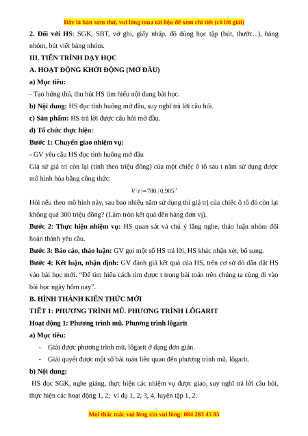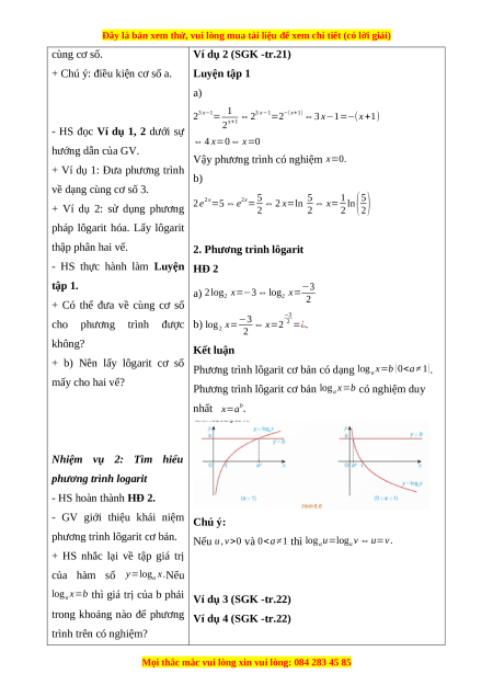 - Giải quyết được một số bài toán liên quan đến phương trình mũ, lôgarit. b) Nội dung: