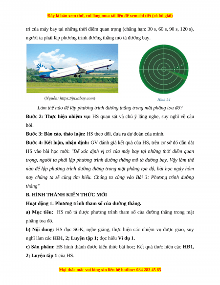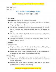 Giáo án Phương trình đường thẳng Toán 10 Cánh diều