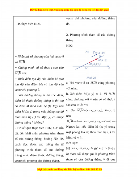 ● Mô tả được phương trình tổng quát và phương trình tham số của đường