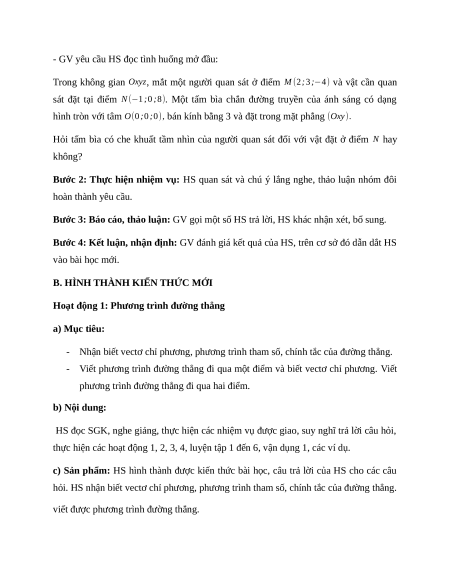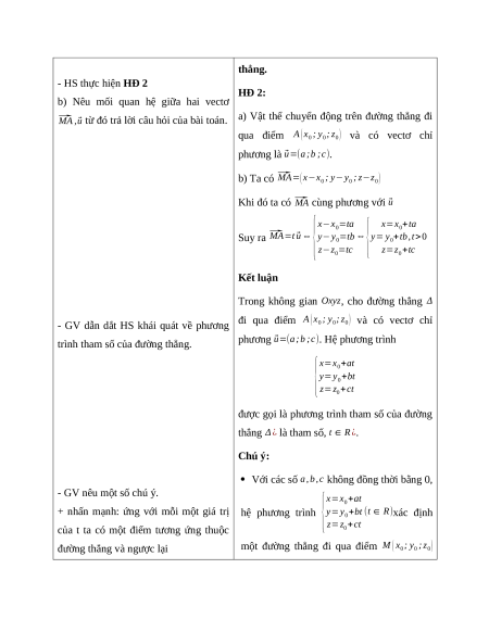 Giáo án Phương trình đường thẳng trong không gian Toán 12 Kết nối tri thức
