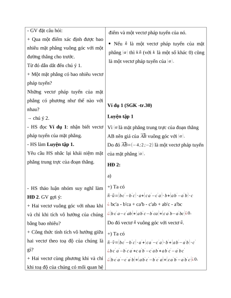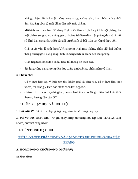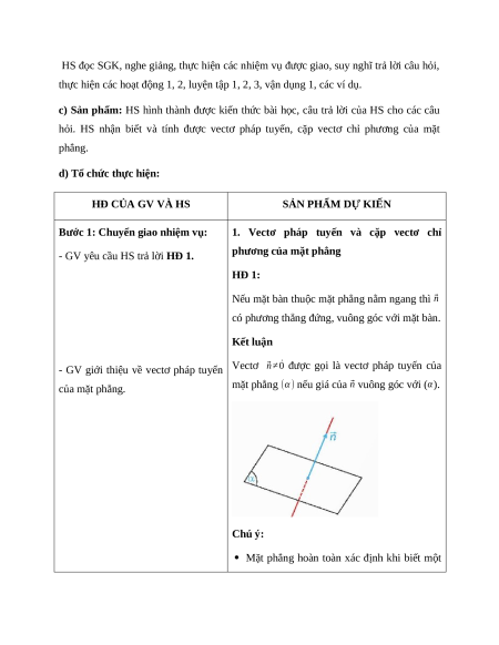 - Nhận biết vectơ pháp tuyến và cặp vectơ chỉ phương của mặt phẳng. b) Nội dung: