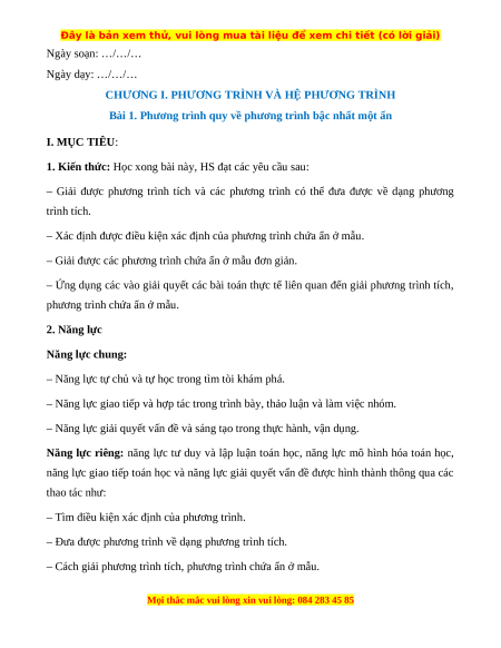 Bài 1. Phương trình quy về phương trình bậc nhất một ẩn I. MỤC TIÊU: