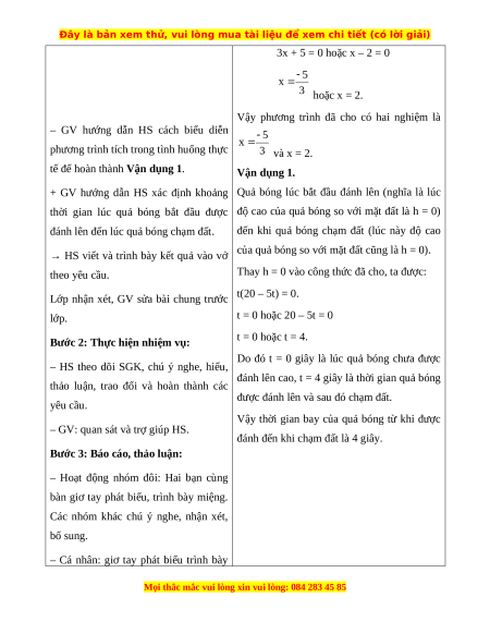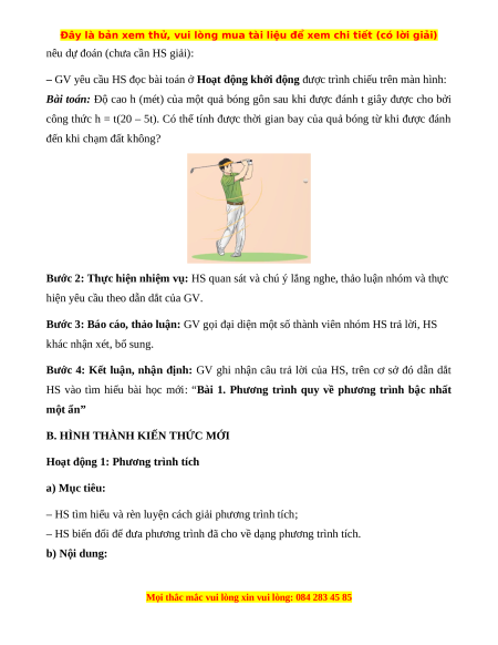 phương trình tích, dẫn dắt của GV và thực hiện HĐ1, đọc và thảo luận Ví dụ 1, Ví dụ 2,