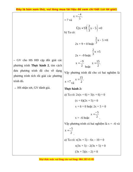 c) Sản phẩm: HS hình thành được kiến thức, rèn luyện cách giải phương trình tích hoặc
