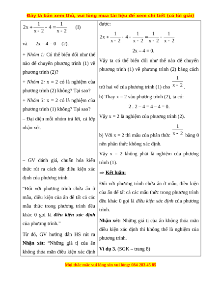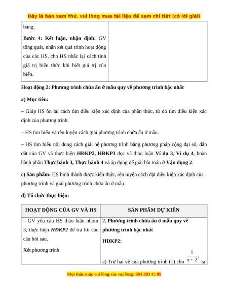 – Xác định được điều kiện xác định của phương trình chứa ẩn ở mẫu.