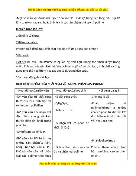 -Định nghĩa, cấu tạo,cách phân loại của polime (polime thiên nhiên và polime tổng hợp)(KTTT)