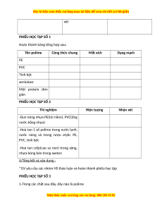 -Viết được PTHH trùng hợp tạo thành PE, PVC,… từ các monomer