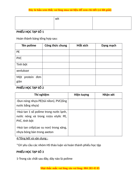 1-Trong các chất sau đây, dãy nào là polime M i ọ thắc m c