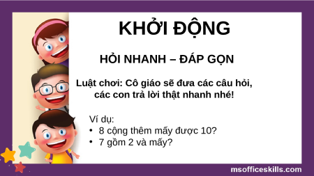 các con trả lời thật nhanh nhé! Ví dụ: