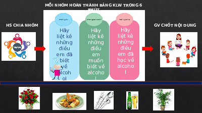MỖI NHÓM HOÀN THÀNH BẢNG KLW TRONG 6 PHÚT HS CHIA NHÓM GV CHỐT NỘI DUNG Hãy Hãy Hãy liệt kê liệt kê liệt kê những những những điều điều điều em đã em em đã biết muốn học về về biết về alcoho alcoh alcoho l ol l Nội dung bài học