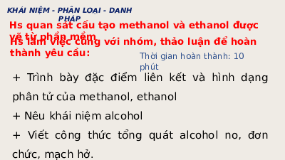 phân tử của methanol, ethanol + Nêu khái niệm alcohol