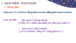 I. KHÁI NIỆM – DANH PHÁP 1. Khái niệm