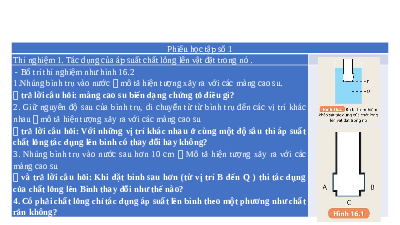 BÀI 16: ÁP SUẤT CHẤT LỎNG, ÁP SUẤT KHÍ QUYỂN