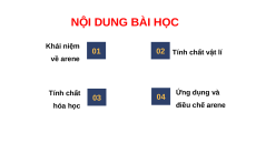 02 Tính chất vật lí về arene Tính chất Ứng dụng và 03 04 hóa học điều chế arene