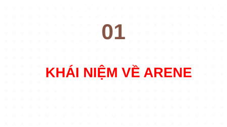 ứng dụng trong những lĩnh vực nào? BÀI 14: ARENE (HYDROCARBON THƠM) NỘI DUNG BÀI HỌC Khái niệm 01