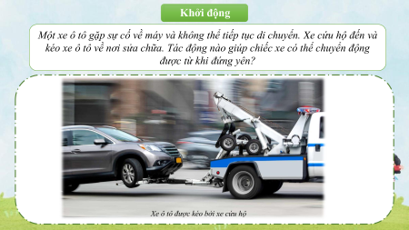kéo xe ô tô về nơi sửa chữa. Tác động nào giúp chiếc xe có thể chuyển động