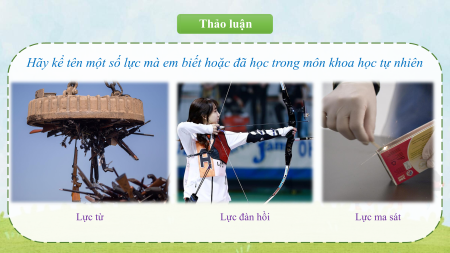 Hãy kể tên một số lực mà em biết hoặc đã học trong môn khoa học tự nhiên Lực từ Lực đàn hồi Lực ma sát