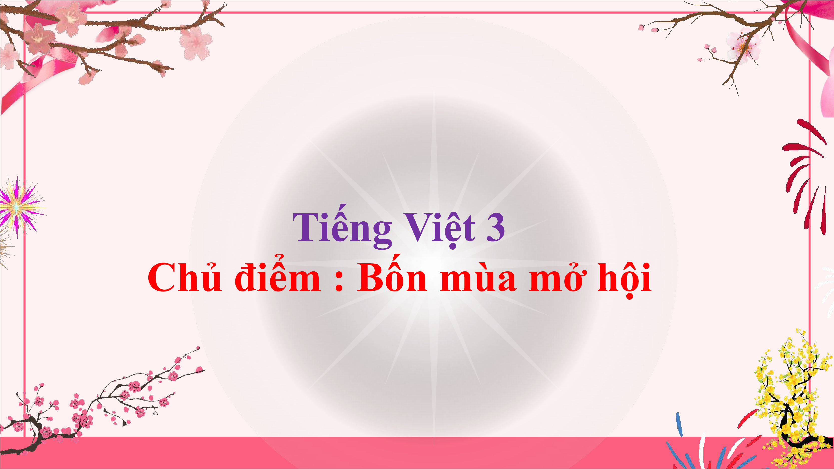 - Bộ bài giảng powerpoint Chủ đề 9: Bốn mùa hoa nở hội Tiếng việt lớp 3 Chân trời sáng tạo bao gồm đầy đủ các bài giảng trong cả năm. Bộ bài giảng được thiết kế theo phong cách hiện đại, đẹp mắt, trình bày chi tiết cho từng phần học và bám sát chương trình Sách giáo khoa Tiếng việt lớp 3 Chân trời sáng tạo.