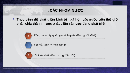 Các n c trên th gi i đ c phân chia thành m y nhóm n c? Các ch tiêu phân chia ướ ế ớ ượ ấ ướ ỉ