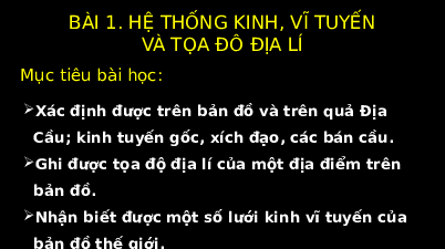 BÀI 1. HỆ THỐNG KINH, VĨ TUYẾN