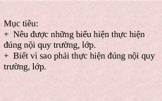 + Biết vì sao phải thực hiện đúng nội quy trường, lớp. Chủ đề