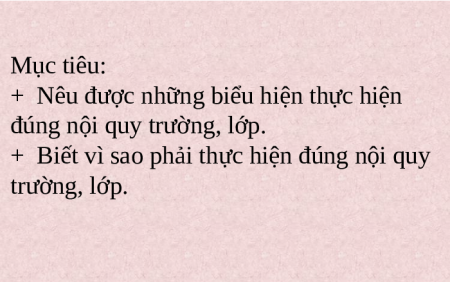 EM VỚI NỘI QUY TRƯỜNG, LỚP Mục tiêu: