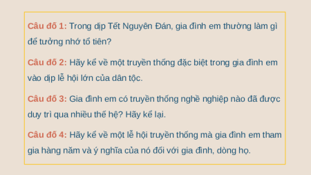 Câu đố 1: Trong dịp Tết Nguyên Đán, gia đình em thường làm gì