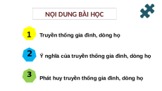 hiện những truyền thống nào của gia đình, dòng họ? BÀI 1: TỰ HÀO VỀ TRUYỀN THỐNG GIA ĐÌNH DÒNG HỌ