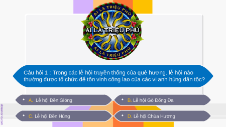 Câu hỏi 1 : Trong các lễ hội truyền thống của quê hương, lễ hội nào
