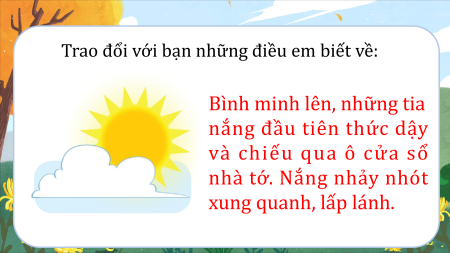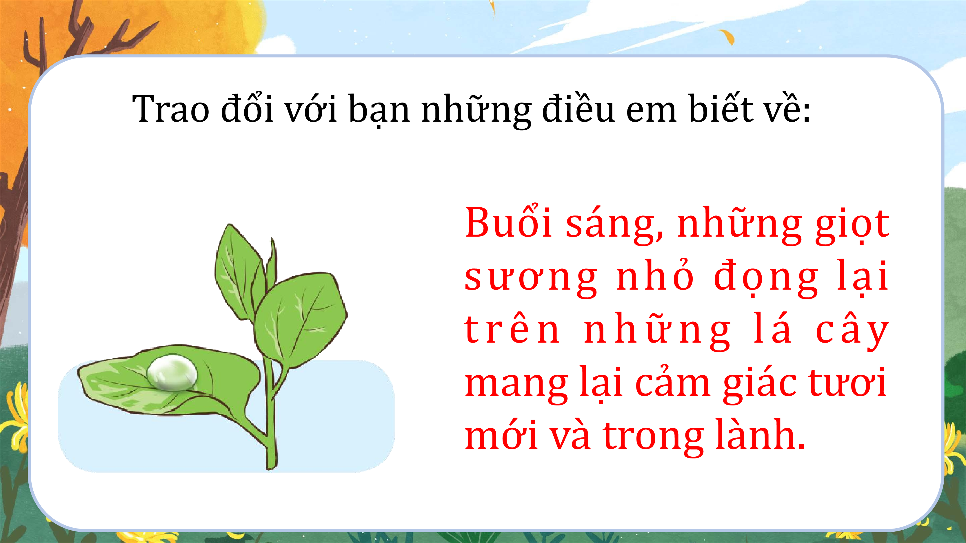 Trao đổi với bạn những điều em biết về: Buổi sáng, những giọt sương nhỏ đọng lại