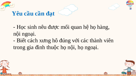 - Học sinh nêu được mối quan hệ họ hàng, nội ngoại.