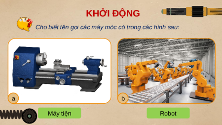 Cho biết tên gọi các máy móc có trong các hình sau: a b Máy tiện Robot