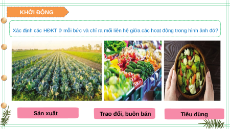 Xác định các HĐKT ở mỗi bức và chỉ ra mối liên hệ giữa các hoạt động trong hình ảnh đó?