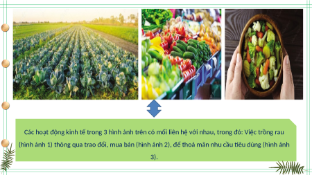 Các hoạt động kinh tế trong 3 hình ảnh trên có mối liên hệ với nhau, trong đó: Việc trồng rau