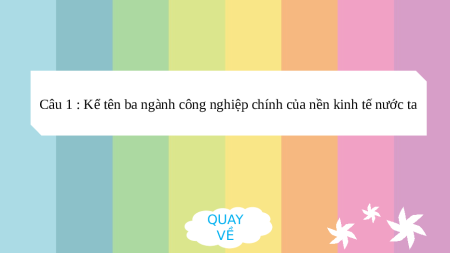 Câu 1 : Kể tên ba ngành công nghiệp chính của nền kinh tế nước ta QUAY VỀ